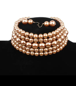 5 layered pearl choker & earring set. By the layers is guaranteed to up the ante on your lewk.